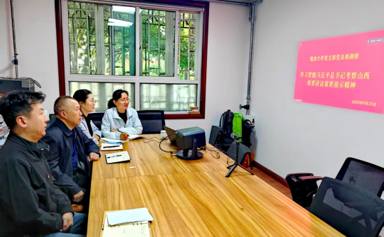 9月25日上午,规划合作党支部在龙城校区712会议室、太谷校区17号楼会议室同步开设会场,举办“学习贯彻习近平总书记考察山西重要讲话重要指示精神”党员专题培训班。党支部书记程刚主持并领学。支部全体党员佩戴党徽,以饱满的热情参加了集中学习。